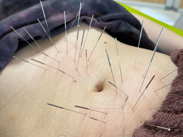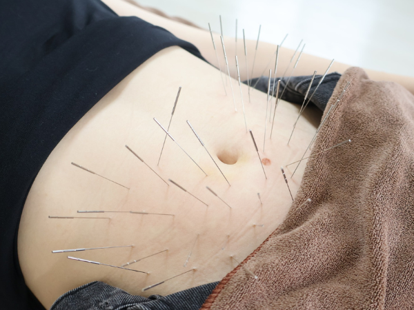 鍼灸では、硬くなったお腹や骨盤内の筋肉をゆるめ、